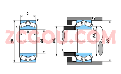 NACHI轴承详细参数d = 340D = 520 B1 = 133 C = 133 da(min) = 462 Db(min) = 377 ra(max) = 4 ra1(max) = 5 Mass = 101 |