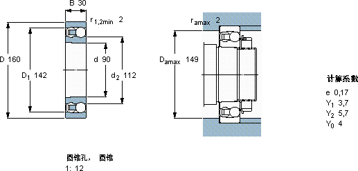 | 90 | 160 | 30 | 57,2 | 23,6 | 1,08 | 8500 | 5300 | 2,40 | 1218 K |