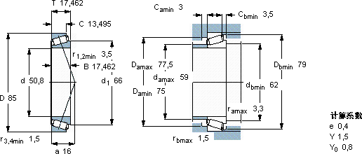| 主要数据尺寸 | 基本负荷额定值 | 疲劳负荷限值 | 额定速度 | 体积 | 型号 |