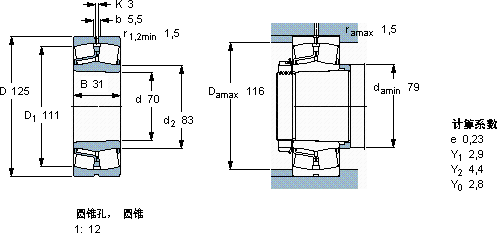 22214EK*球面滚子轴承近似的SKF轴承型号