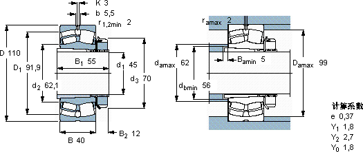 22310EK+H2310*球面滚子轴承近似的SKF轴承型号