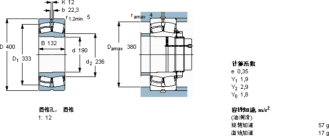 | 球面滚子轴承, 圆柱和圆锥孔, 圆锥型内孔, 用于振动场合 | ||||||||||