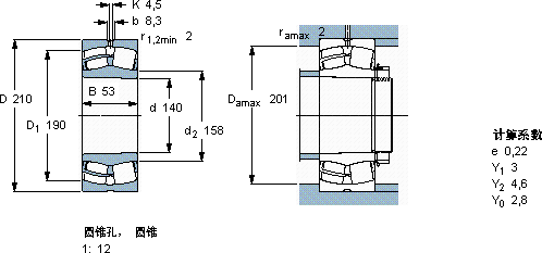 球面滚子轴承, 圆柱和圆锥孔, 圆锥型内孔, 无密封件
