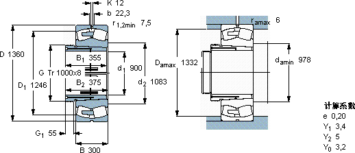 230/950CAK/W33+AOH30/950球面滚子轴承近似的SKF轴承型号