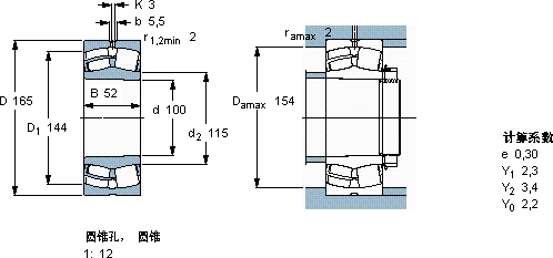 球面滚子轴承, 圆柱和圆锥孔, 圆锥型内孔, 无密封件