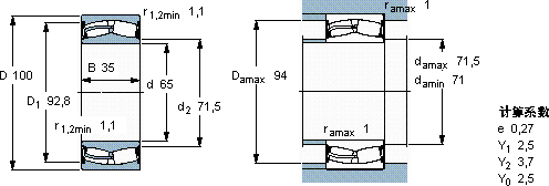 球面滚子轴承, 圆柱和圆锥孔, 圆柱型内孔, 两面密封件