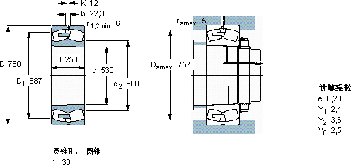 240/530ECAK30/W33*球面滚子轴承近似的SKF轴承型号