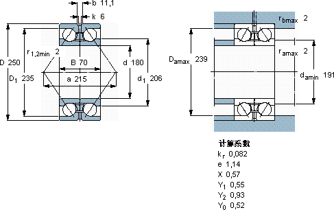 角接触球轴承, 双列, 无密封件, 两部份内圈