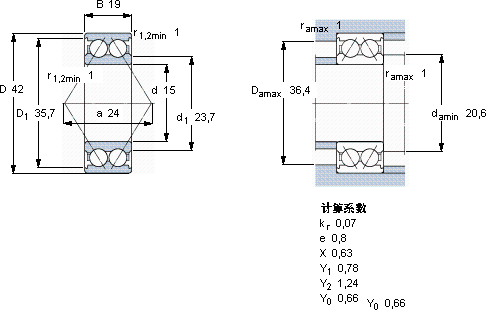 角接触球轴承, 双列, 无密封件