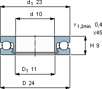 | 10 | 24 | 9 | 0,22 | 0,175 | 550 | 0,0040 | 51100 V/HR22T2 | |