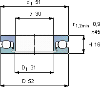| 30 | 52 | 16 | 0,9 | 0,72 | 345 | 0,026 | 51206 V/HR22Q2 | |