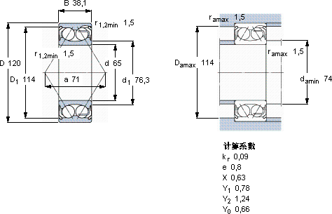 5213E-2Z角接触球轴承近似的SKF轴承型号