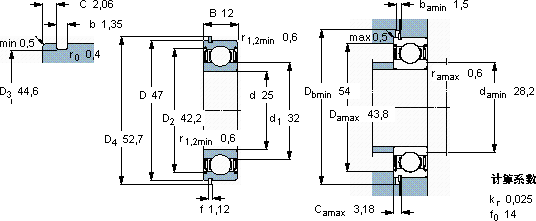 | 动态 | 静态 | 参照速度 | 限制速度 | 轴承 | 止动环 | ||||||
