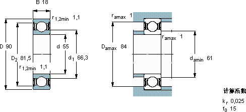 | 55 | 90 | 18 | 29,6 | 21,2 | 0,9 | 4000 | 0,39 | 6011-2RS1/W64 * |
