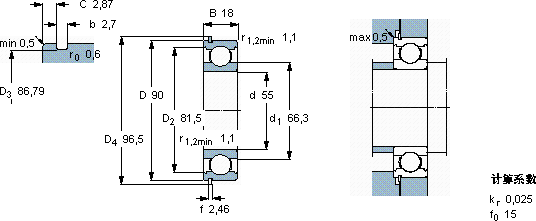 | 动态 | 静态 | 参照速度 | 限制速度 | 轴承 | 止动环 | ||||||