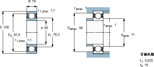 | 65 | 100 | 18 | 31,9 | 25 | 1,06 | - | 4000 | 0,44 | 6013-2RS1 * | |
