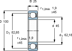 | 45 | 100 | 25 | 0,9 | 0,54 | 500 | 0,30 | 6309/HR11QN | |