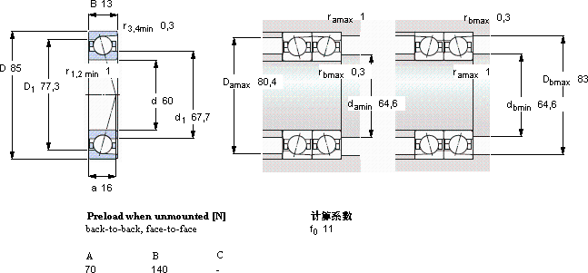 | 60 | 85 | 13 | 19,9 | 15,3 | 0,655 | 18000 | 28000 | 0,16 | 71912 CD/HCP4A | - |