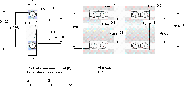 | 90 | 125 | 18 | 47,5 | 51 | 2,08 | 9500 | 16000 | 0,55 | 71918 CD/P4A | - | |