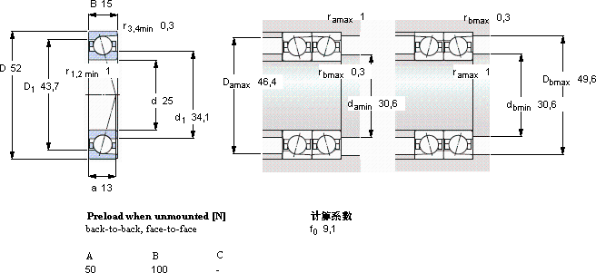 | 25 | 52 | 15 | 13,5 | 7,2 | 0,305 | 38000 | 53000 | 0,12 | 7205 CD/HCP4A | - |