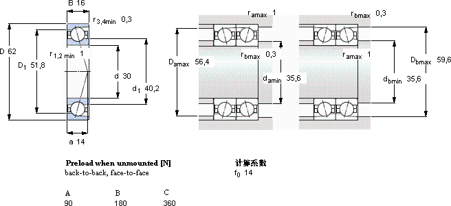 | 30 | 62 | 16 | 24,2 | 16 | 0,67 | 24000 | 38000 | 0,19 | 7206 CD/P4A | - | |