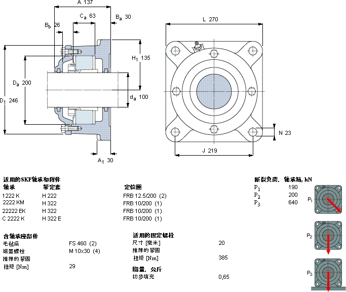 722522B7225(00)系列法兰轴承座近似的SKF轴承型号