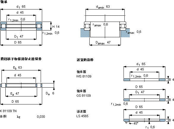 | 45 | 65 | 14 | 45 | 153 | 15,3 | 0,0014 | 2200 | 4500 | 0,13 | 81109 TN | K 81109 TN | |