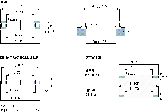 | 70 | 105 | 27 | 146 | 530 | 55 | 0,022 | 1300 | 2600 | 0,77 | 81214 TN | K 81214 TN | |