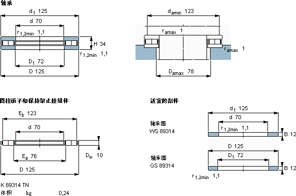 | 70 | 125 | 34 | 186 | 800 | 81,5 | 0,051 | 1300 | 2600 | 1,82 | 89314 TN | K 89314 TN | |