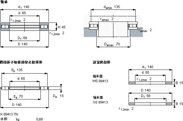 | 动态 | 静态 | 参照速度 | 限制速度 | 轴承 | 圆柱滚子和保持架止推组件 | |||||||