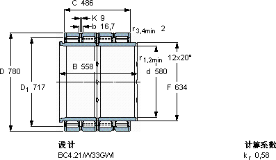 圆柱滚子轴承, 四列, BC4.21, 延长内圈宽度