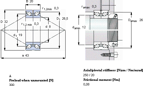 | 8 | 32 | 20 | 12,5 | 16,3 | 0,6 | 5300 | 0,09 | BEAS 008032-2RS | BEAS 8/32/C 7P60 | |