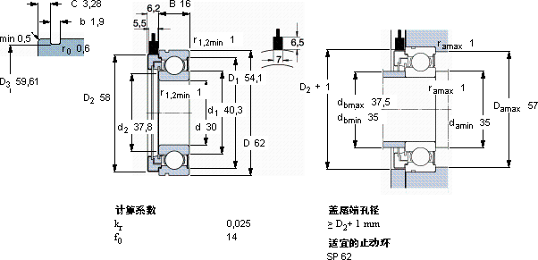 | 30 | 62 | 16 | 20,3 | 11,2 | 0,475 | 7500 | 64 | ±4 | 90 ± 45 | 0,22 | BMB-6206/064S2/EA002A | |