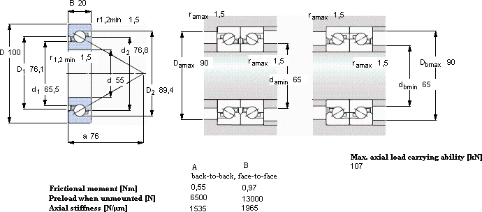 | 55 | 100 | 20 | 67 | 193 | 7,2 | 5600 | 6700 | 0,66 | BSD 55100 CG | BS 55/100 7P62U | |