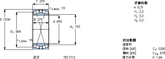 圆锥滚子轴承, 双列,TDI结构, TDI TDI.1/Y2