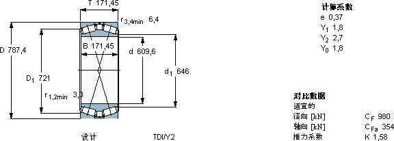 圆锥滚子轴承, 双列,TDI结构, TDI/Y2 /WIY2 /WIY22 TDI.1/WIY2