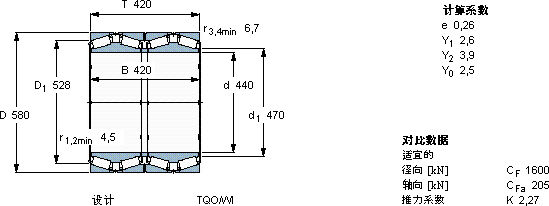 圆锥滚子轴承, 四列,TQO结构, TQO/WI /WIY/W