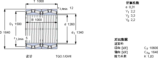 圆锥滚子轴承, 四列,TQO结构, TQO.1/GWI, 轴承孔中的螺旋槽