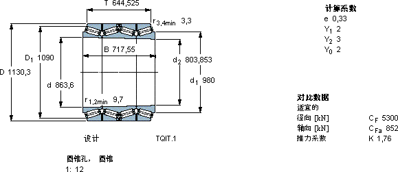 圆锥滚子轴承, 四列,TQI结构, TQIT.1, 圆锥型内孔
