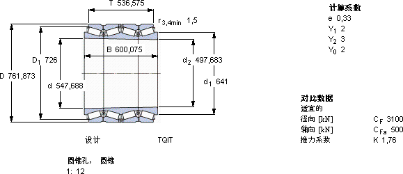 | 圆锥滚子轴承, 四列,TQI结构, TQIT, 圆锥型内孔 |