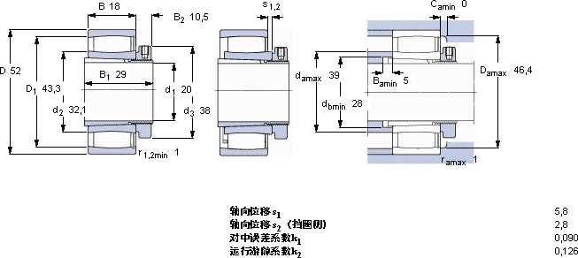| 动态 | 静态 | 参照速度 | 限制速度 | 轴承 + 紧定套 | |||||||