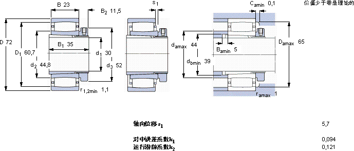 | 动态 | 静态 | 参照速度 | 限制速度 | 轴承 + 紧定套 | |||||||