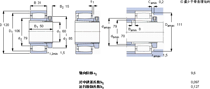 | 动态 | 静态 | 参照速度 | 限制速度 | 轴承 + 紧定套 | |||||||