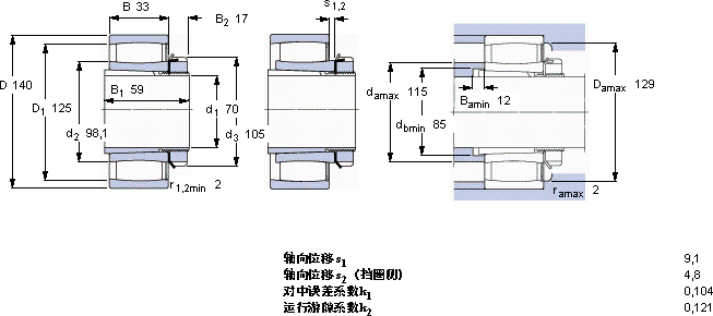| 动态 | 静态 | 参照速度 | 限制速度 | 轴承 + 紧定套 | |||||||