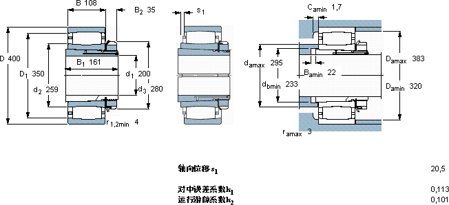| 动态 | 静态 | 参照速度 | 限制速度 | 轴承 + 紧定套 | |||||||