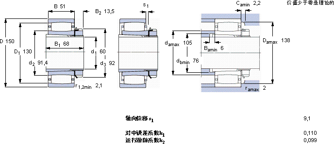 | 动态 | 静态 | 参照速度 | 限制速度 | 轴承 + 紧定套 | |||||||