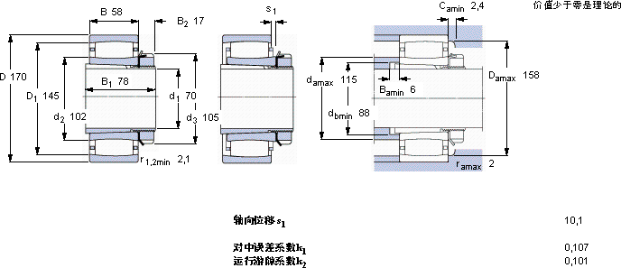 | 动态 | 静态 | 参照速度 | 限制速度 | 轴承 + 紧定套 | |||||||