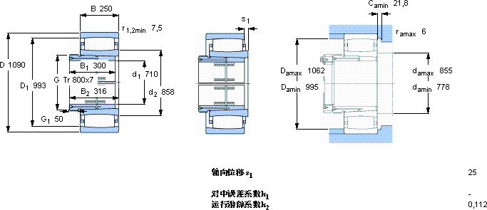| CARB圆环滚子轴承, 带退卸套的, 与保持架 | |||||||||||
