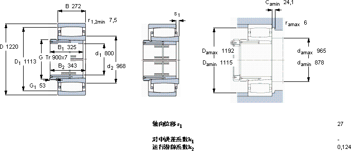 | CARB圆环滚子轴承, 带退卸套的, 与保持架 | |||||||||||