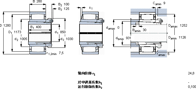 | 动态 | 静态 | 参照速度 | 限制速度 | 轴承 + 紧定套 | |||||||